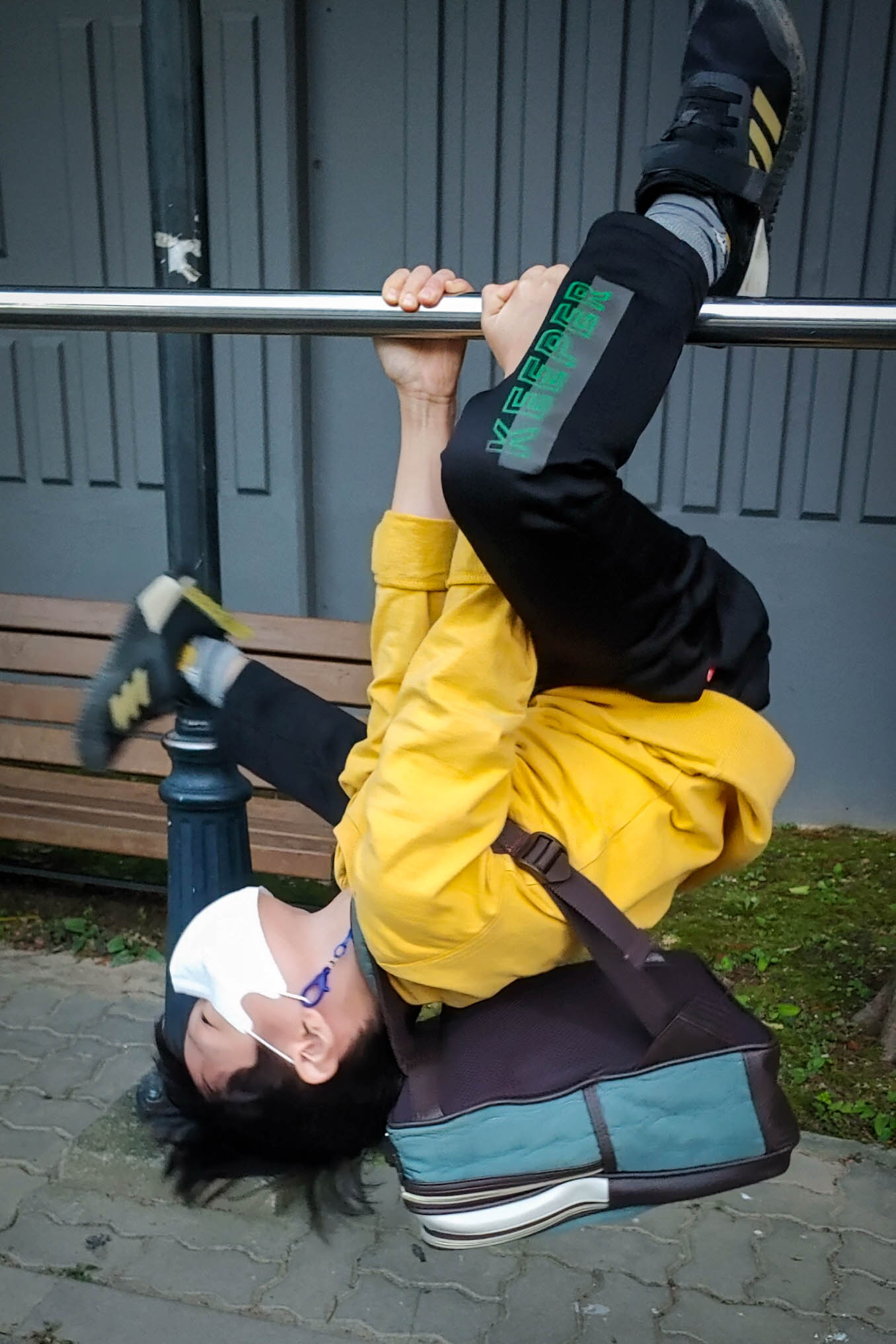 집으로 올라가기 전에 우리 동 옆 철봉을 그냥 지나치지 않는다.
