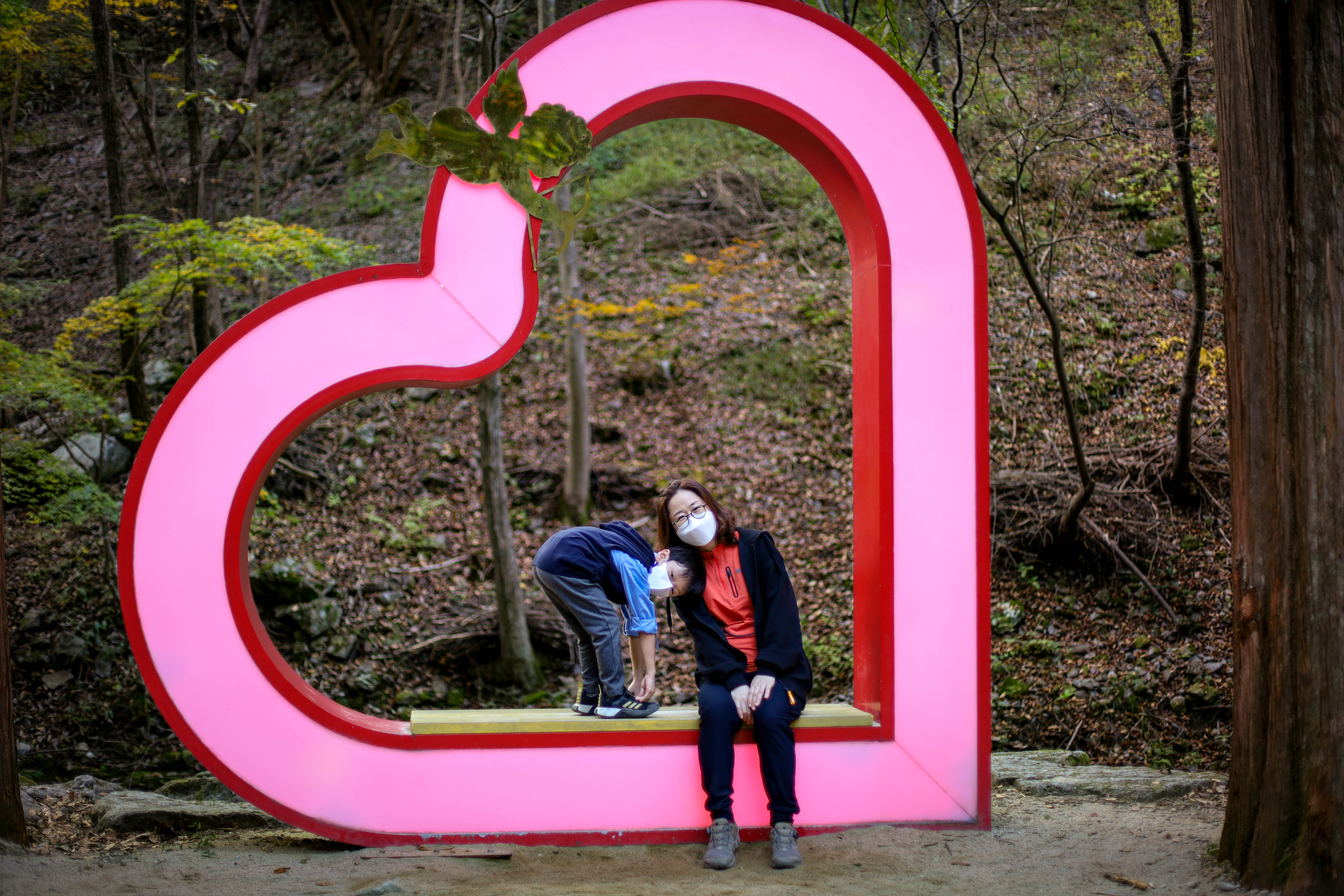 강천사에서 엄마와 함께 포즈를 취해보다