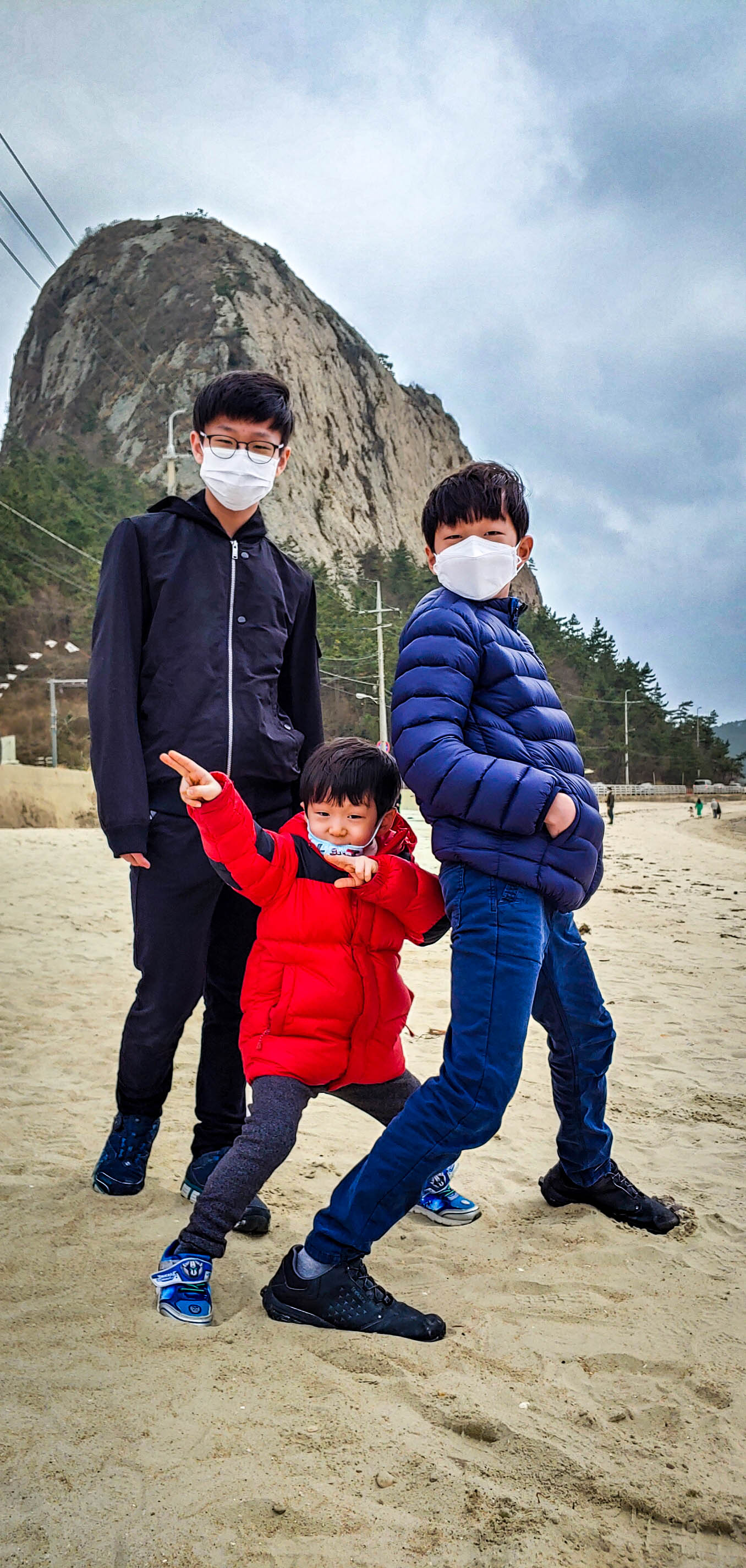 아직은 봄 바다라고 하기에는 조금 이른 때, 삼형제와 함께 선유도 해변에서 근사한 포즈를 잡아보라 했다.