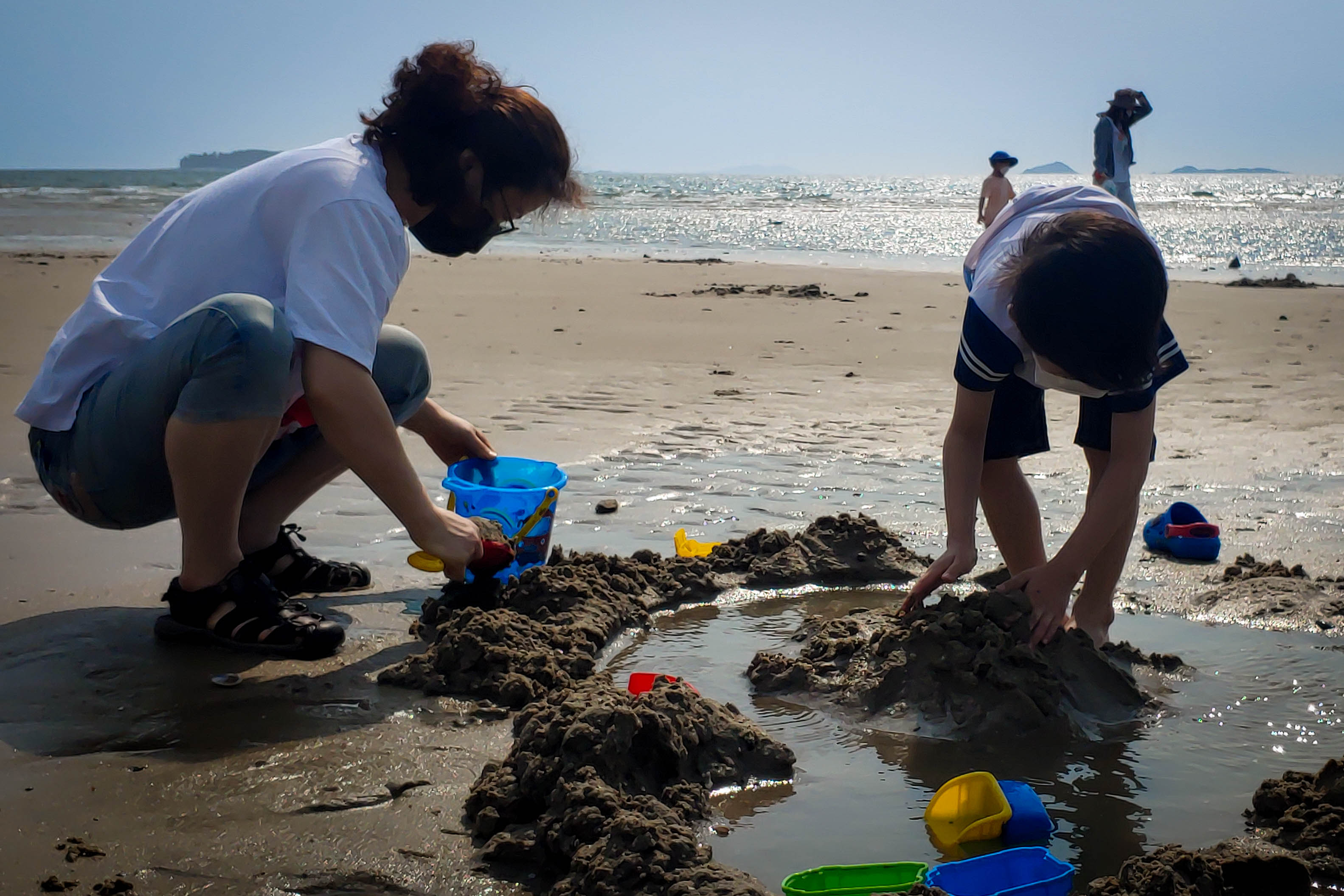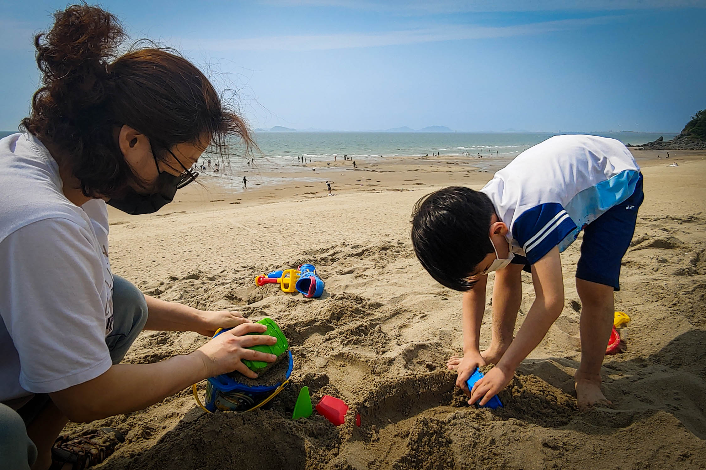 준범이만 데리고 가, 높게 쌓여 있던 모래둔덕에서 모래놀이도 하고, 물 빠진 갯벌에서 즐거운 시간을 만들어 보았다.
