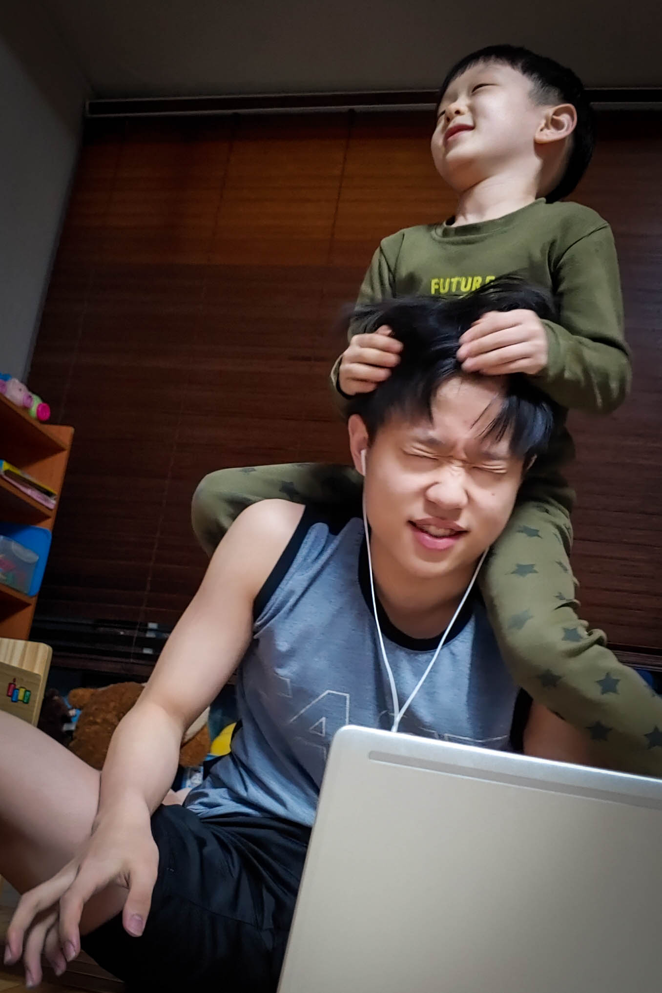넓어진 큰 형의 어깨는 막내에게 가장 타기 좋은 목마.